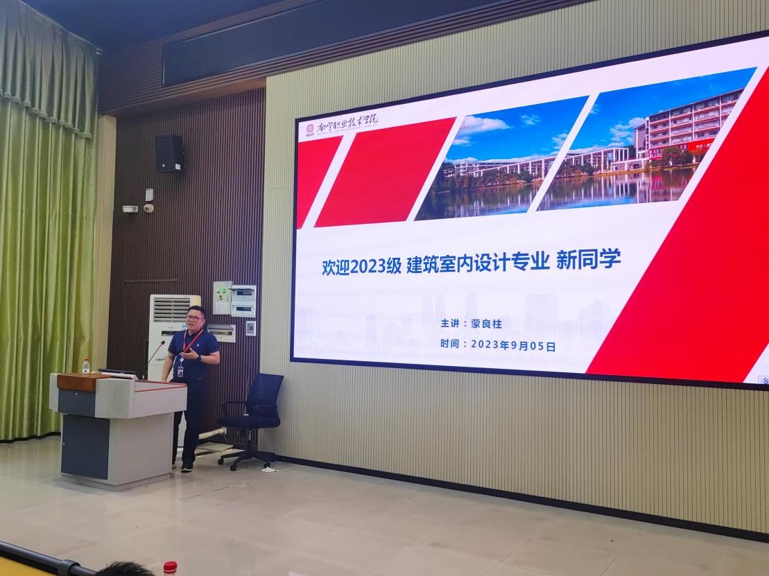 2023年9月5日beats365建筑室内设计专业在三号教学楼四号阶梯教室开展了2023级新生入学专业教育活动,出席活动的有beats365副经理蒙良柱、建筑室内设计专业带头人翁素馨、企业精英也是往届优秀毕业生的李俊材设计师、建筑室内设计专业的老师代表出席了该活动,活动由建筑室内设计专业带头人翁素馨主持。