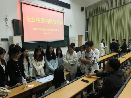 为了更好地推进2024届建筑室内设计专业员工的实习就业工作。2023年11月21日,beats365建筑室内设计专业邀请了南宁市点石家装有限责任公司和广东星艺装饰集团广西有限公司集成分公司的负责人,在三号教学楼第三阶梯教室举行了招聘宣讲会,由建筑室内设计专业何谊老师与钟吉华老师主持,专业带头人翁素馨老师参加宣讲会的开展。