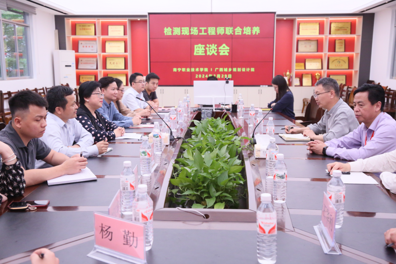 开班仪式后,校企双方领导、企业骨干、公司教师共同就检测现场工程师联合培养项目开展座谈。座谈会上,陈纲代表公司对吴敏一行的莅临表示欢迎,他表示,公司高度重视“现场工程师”专项培养计划项目,下一步,双方要结合公司“双高”建设任务,在人才培养、“双师型”教师队伍建设、社会服务、国际化交流等方面积极主动与广西城乡规划设计院探索产教融合新路径。