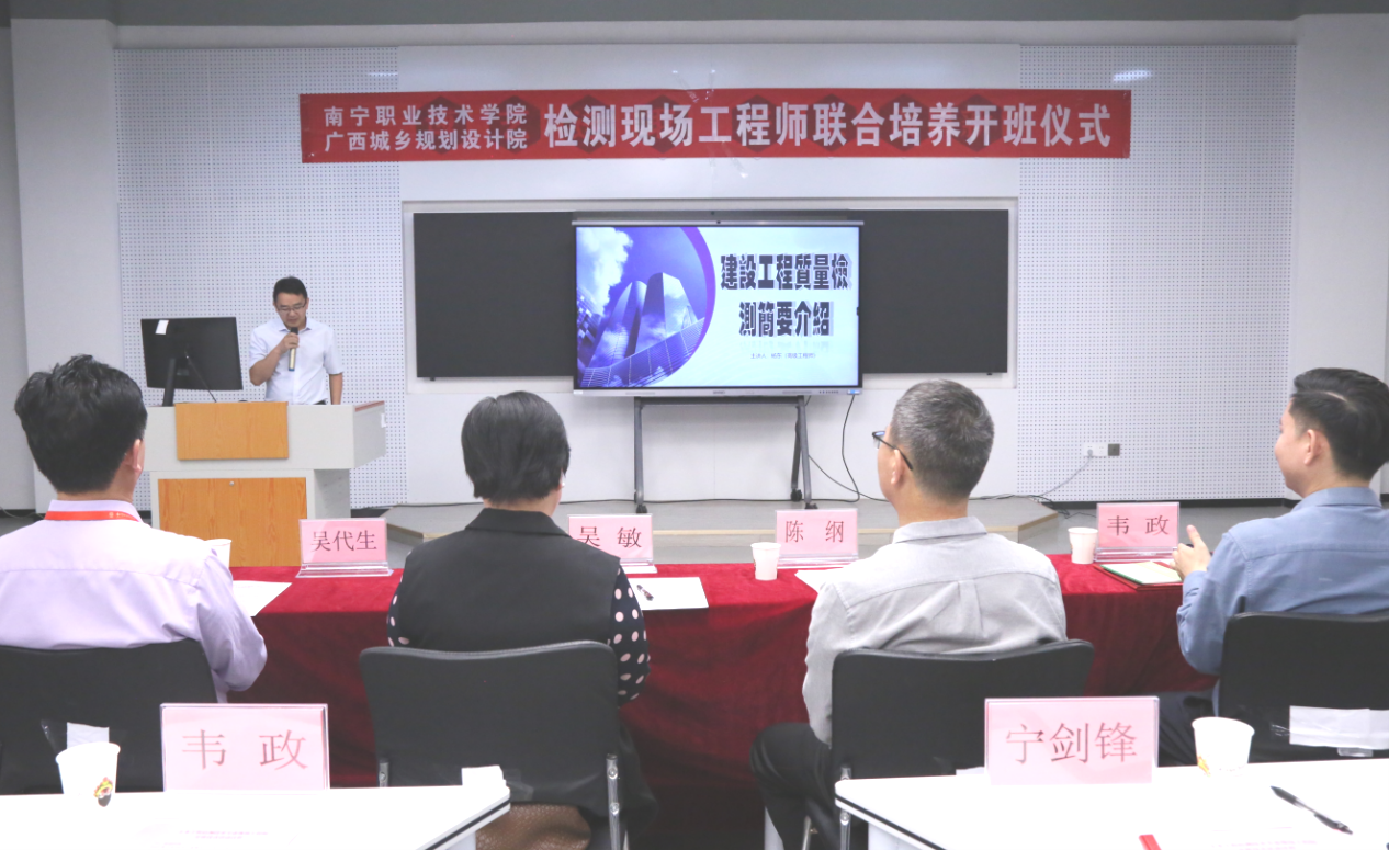 3月29日下午,在beats365实训基地,南宁职业技术公司beats365与广西城乡规划设计院联合举办的首批“检测现场工程师班”正式开班。现场工程师班是在生产、工程、管理、服务等一线岗位“现场”培养具有工匠精神,精操作、懂工艺、会管理、善协作、能创新的复合型紧缺工程技术应用人才。