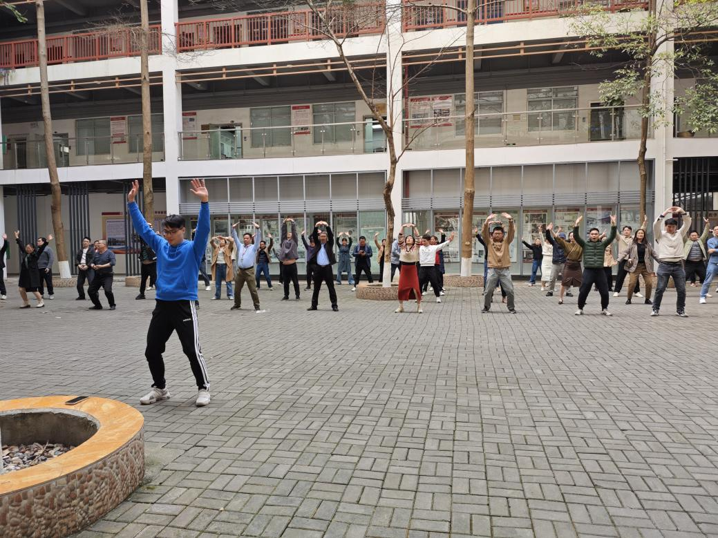 会议结束后,全体教职工移步至三教中庭,在轻松愉悦的氛围中开展八段锦锻炼。舒展的动作、整齐的节奏,大家全身心投入,在传统健身功法中感受运动魅力,为此次阳光体育锻炼活动的正式开展,写下了生动开篇。