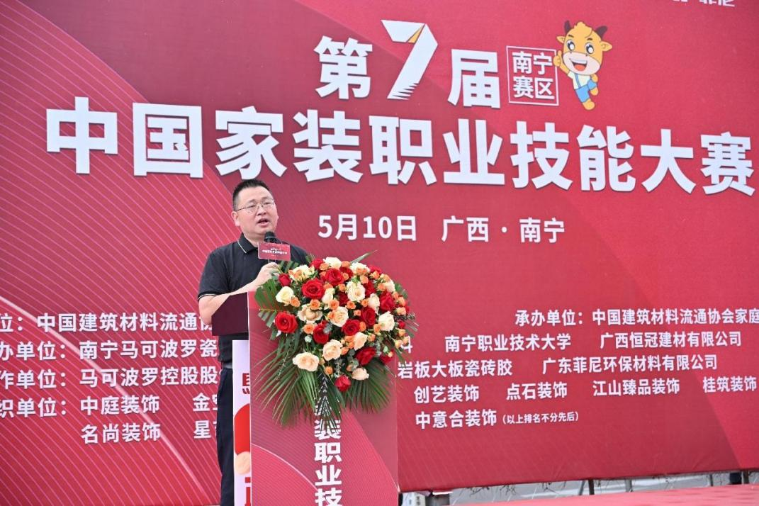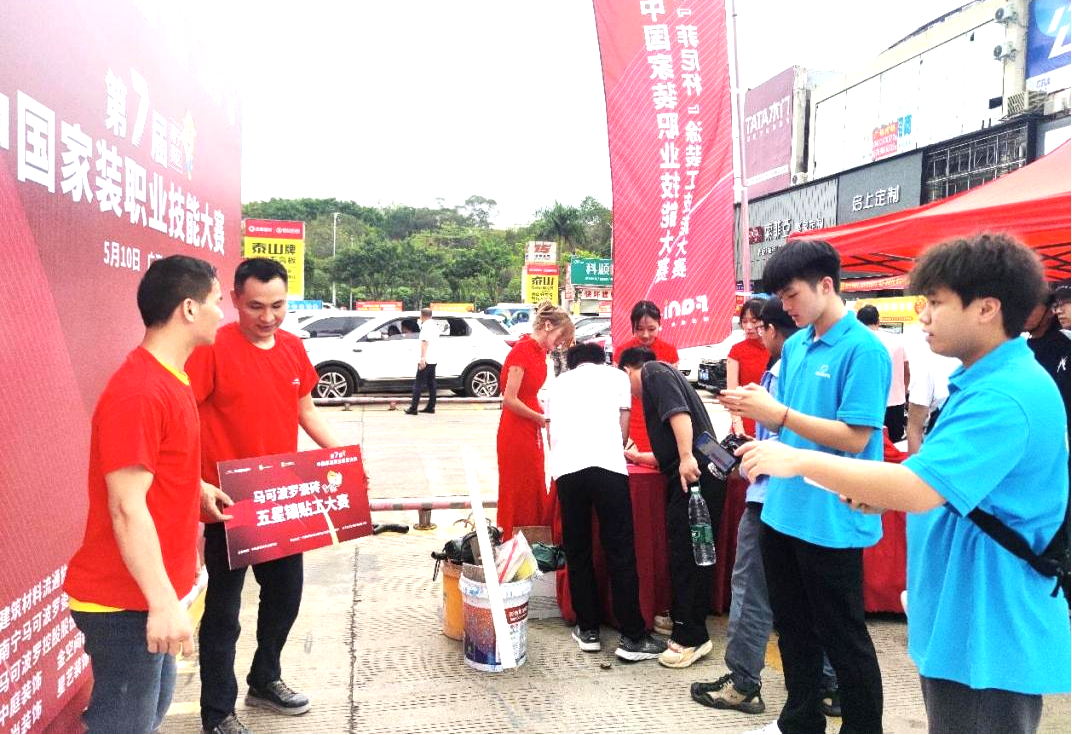 2025年5月10日下午,第七届中国家装职业技能大赛暨马可波罗瓷砖五星镶贴工大赛、菲尼艺术涂装工大赛南宁赛区在快环建材家居广场盛大开启,本次大赛由中国建筑材料流通协会主办,中国建筑材料流通协会家庭装修委员会承办,beats365官网、马可波罗控股股份有限公司等联合承办。beats365建筑装饰工程技术专业团队执行协助开展南宁赛区的组织、宣传等工作。