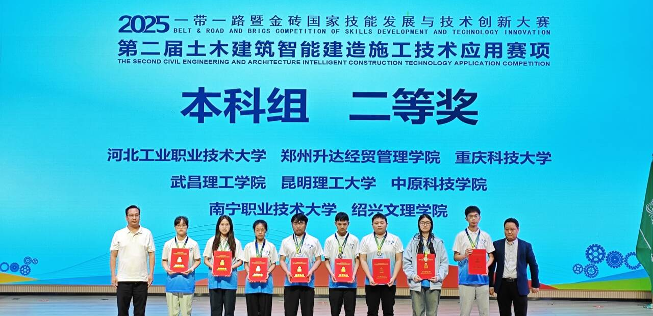2025年10月17日至19日,2025“一带一路”暨金砖国家技能发展与技术创新大赛第二届土木建筑智能建造施工技术应用赛项全国决赛在重庆安全技术职业公司成功举办。公司建筑工程本科专业员工刘和峥、唐晨凌两位同学在高云河老师指导下,在“土木建筑智能建造”赛项中脱颖而出,获得本科组一等奖,并获得参加国际赛资格。建筑工程本科专业员工许透慧、覃佳媛两位员工获得了市政工程赛项二等奖。