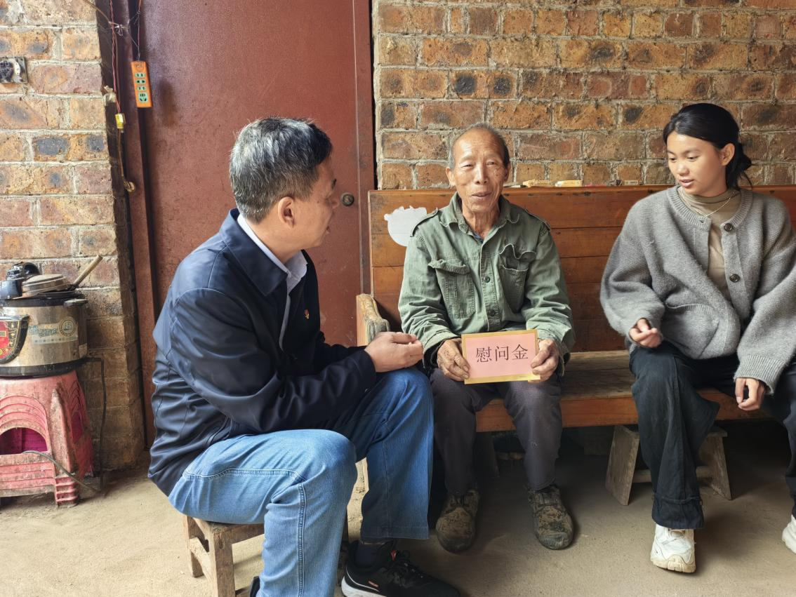此外,吴代生一行还前往玉峰村,看望公司派驻的工作队员詹建祥。期间,吴代生详细询问了他在驻村期间的工作开展情况与日常生活情况,对他扎根基层、辛勤付出所取得的工作成绩给予了充分肯定,并送上慰问金,鼓励他继续坚守岗位,为当地乡村振兴事业贡献力量。