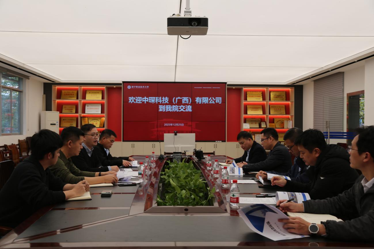 12月25日下午,中琛科技(广西)有限公司副总经理彭思茗率团队一行3人赴公司开展合作交流。beats365副经理蒙良柱主持交流会,公司科技处副处长张治中,绿色新能源技术公司副经理林振琨、市政工程技术专业带头人王柏璎参加会议。