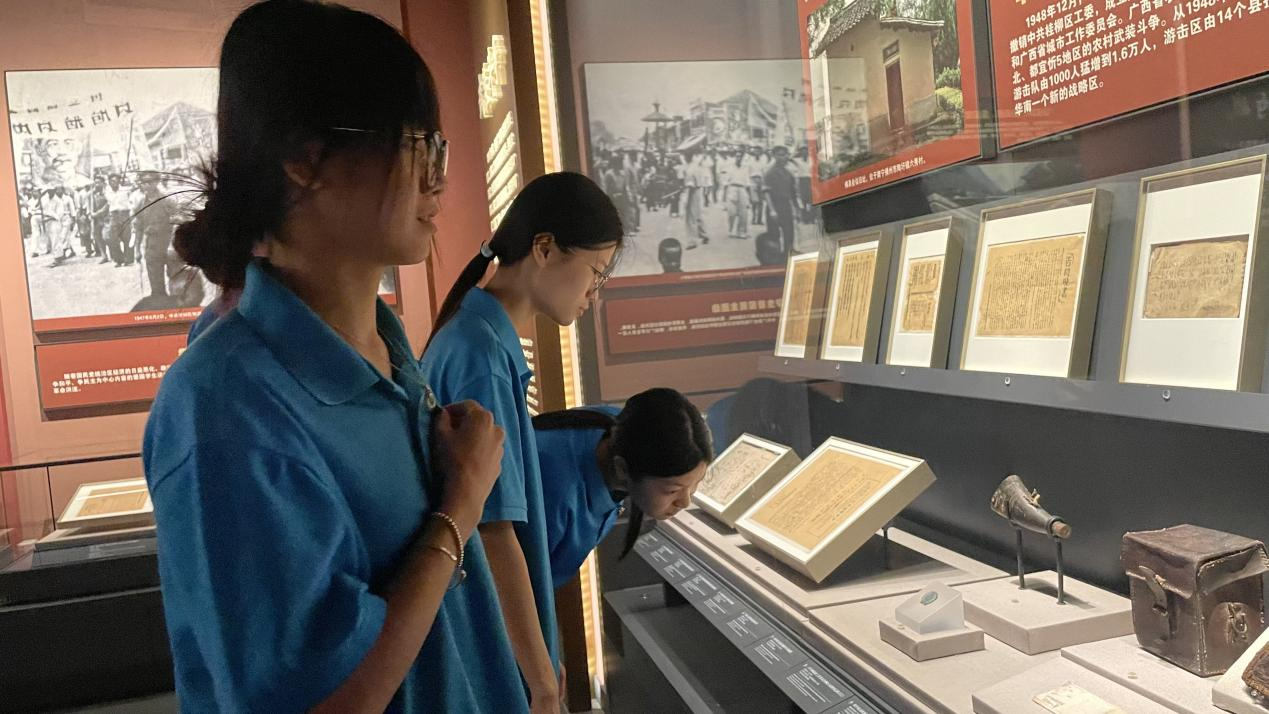 在参观过程中,师生们依次参观了“太平天国”“抗法固边”“共和曙光”“高擎红旗”“抗日救亡”“八桂新天”六大展区。参观结束后,三名积极分子李小莉、农焯、林慧敏同学在参观结束后分别结合金田起义、镇南关大捷、湘江战役进行了分享。而后支部宣传委员曾顺作为教师党员代表也结合自己的所见所闻进行分享。活动的最后,支部书记郑思在总结时强调,要从广西革命史中回顾中国共产党人筚路蓝缕、顽强奋斗的伟大历程,希望同学们从历史现场汲取力量,像先烈们一样坚守信仰、脚踏实地。