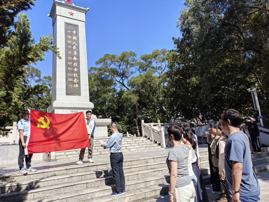 教师党员于中越人民革命烈士纪念碑前合影(张文婷/摄)