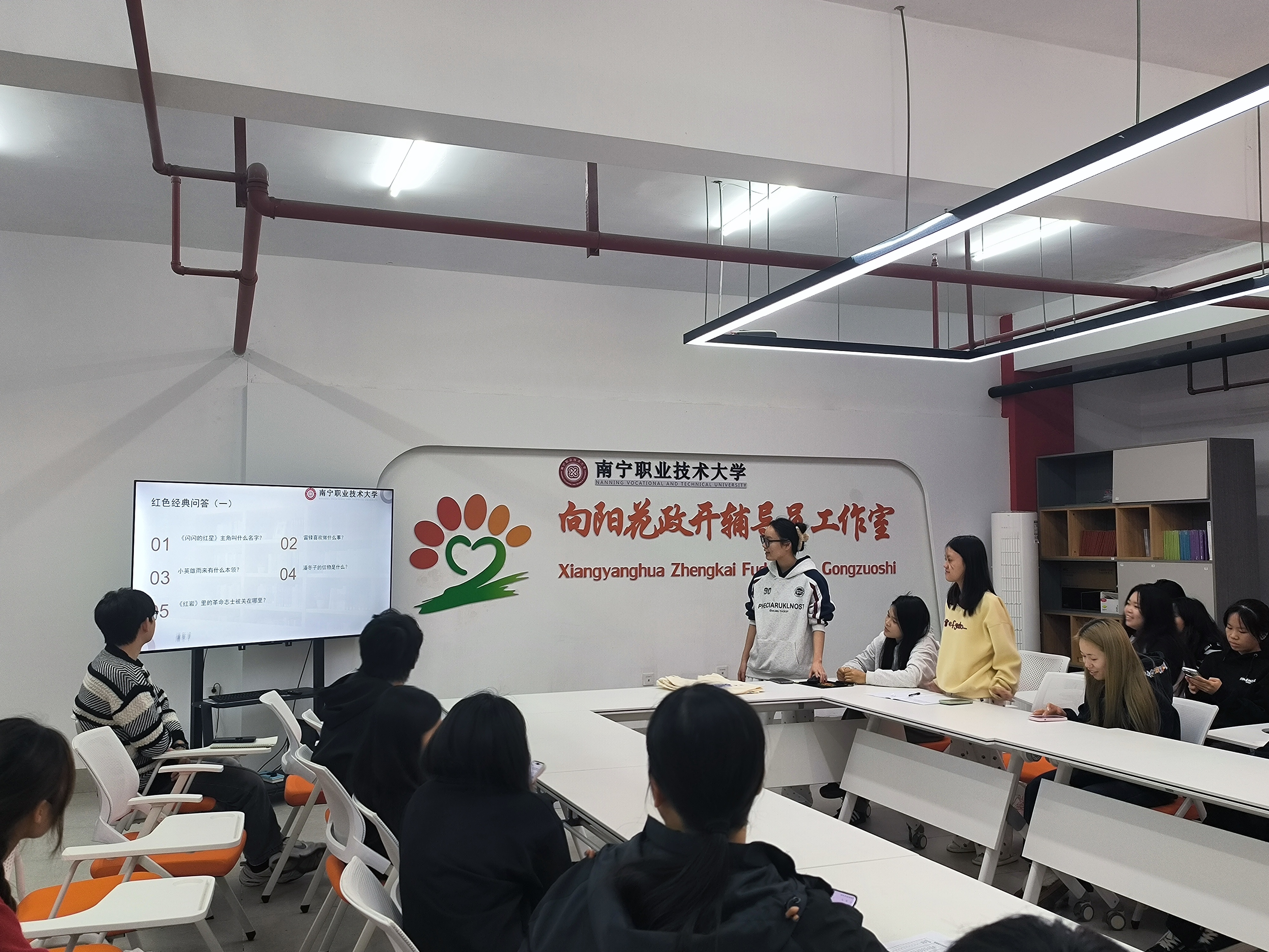 互动环节的“红色经典问答”氛围热烈。“雷锋说要做一颗什么样的螺丝钉?”“《闪闪的红星》里潘冬子的妈妈是什么身份?”等问题接连抛出,同学们踊跃抢答,在趣味问答中巩固红色知识,加深对经典作品的理解。