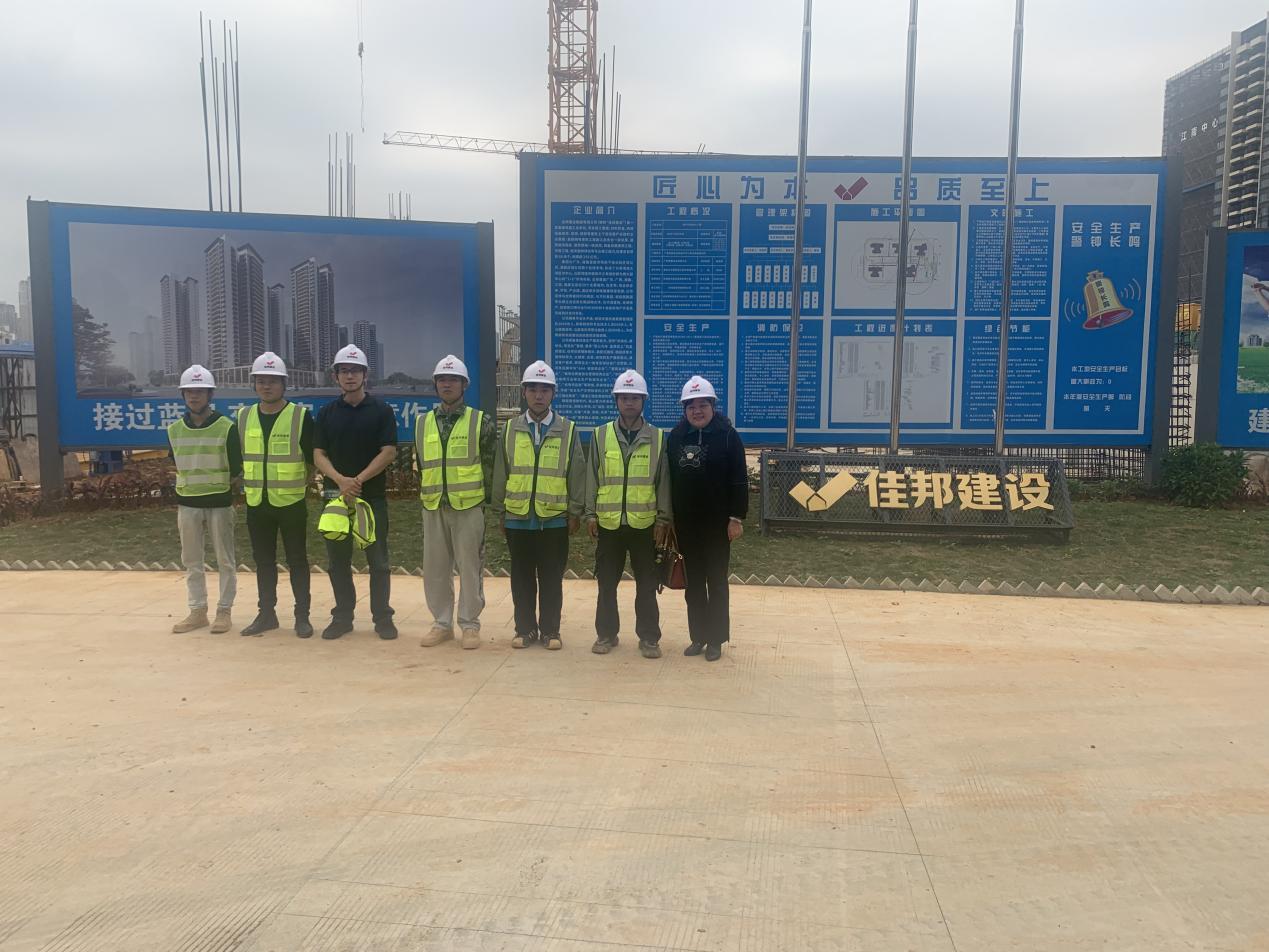 2023年2月13日下午,建筑工程管理团队李立宁、韦素青、廖颖文三位老师到佳邦建设集团有限公司江南中心二期项目考察交流。本次考察是根据公司关于顶岗实习和就业工作的安排部署,为了提高人才培养质量,拓展实习就业空间,推进校企合作而开展的。
