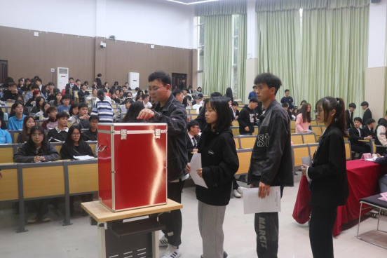 由新一届选举的委员代表吴聪聪向同学们发出倡议:作为新时代的青年,我们应该做到以下三点,一把握人生航向,担当时代新使命;二锻造真才实学,谱写青春新华章;三勇于创新创业,筑就卓越新梦想。