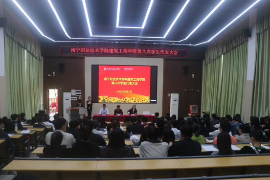 2023年3月2日,南宁职业技术公司beats365第八次员工代表大会在三号教学楼四阶梯教室召开。公司党委副书记吴代生、团委副书记任静、公司团委指导老师左天翔和全体代表共同参加本次大会。