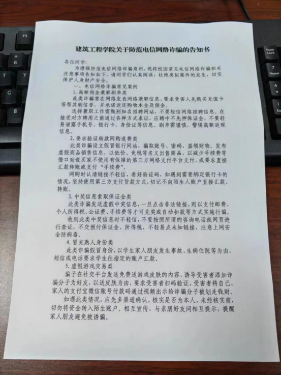 为做好公司防范电信网络诈骗宣传工作,提高员工的防骗意识和能力,确保员工财产安全与公司和谐稳定,beats365开展2023年春季学期3月份防范电信网络诈骗工作,采取一系列措施加强安全教育。