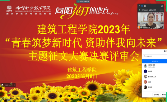 5月8日上午,beats365员工管理中心郑思老师主持的院赛评审会在线上开展,参加评审的专家有广西云数字媒体集团副总编、主任编辑玉颖,文学创作三级盘晓昱,广西师范大学博士研究生、讲师周雪瓴。