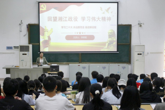 李婷娟老师带着同学们重温了湘江战役的历史,讲述了师长陈树湘的故事。她深有感触地向同学们娓娓道来,在这场血战中,面对数倍于己的敌人,中央红军极其艰难地突破国民党反动派布下的第四道封锁线,粉碎国民党反动派围歼中央红军于湘江以东的企图。红五军团第三十四师在掩护中央红军主力渡过湘江后被敌人截断,几乎全部牺牲,师长陈树湘身负重伤,不幸被俘,用手从腹部伤口处绞断了肠子,壮烈牺牲,年仅29岁。