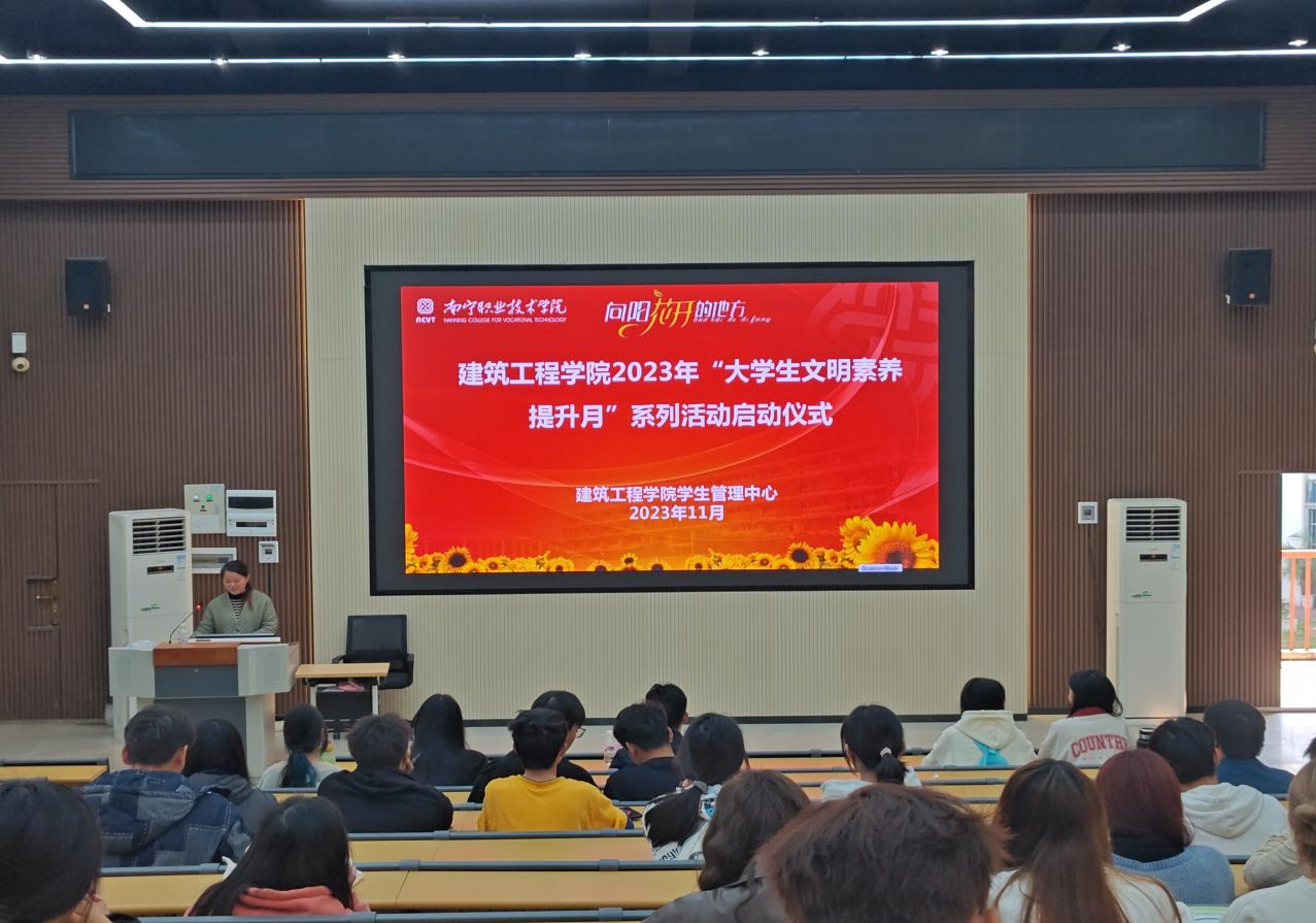 启动仪式上,卢丹萍老师对文明素养提升月活动进行了工作布置。她提到,本次参会的员工干部骨干要认真领会并传达、落实本次文明礼仪讲座的精神,各班要召开一次以文明礼仪为主题的班会或团课活动,要以班级为单位开展一次校园文明礼仪主题活动,要充分利用易班、QQ群、微信群等媒介载体开展文明礼仪宣传教育,同时各班要配合公司和公司开展宿舍卫生大整治、文明礼仪培训、文明礼仪知识竞赛、文明礼仪督导等工作。