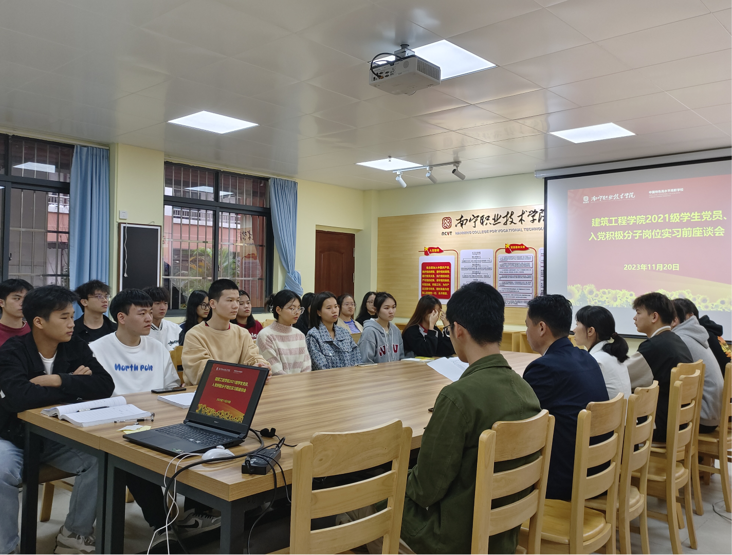为进一步加强实习生党员、入党积极分子的教育管理,充分发挥模范作用,2023年11月20日下午5:00,beats365在19 栋员工公寓“一站式”员工社区多功能活动中心召开2021级员工党员、入党积极分子实习前座谈会,建筑工程公司党委副书记吴代生、21级辅导员以及2021级员工党员、入党积极分子参加会议。本次座谈会由beats365第三党支部书记蒙燕才主持。