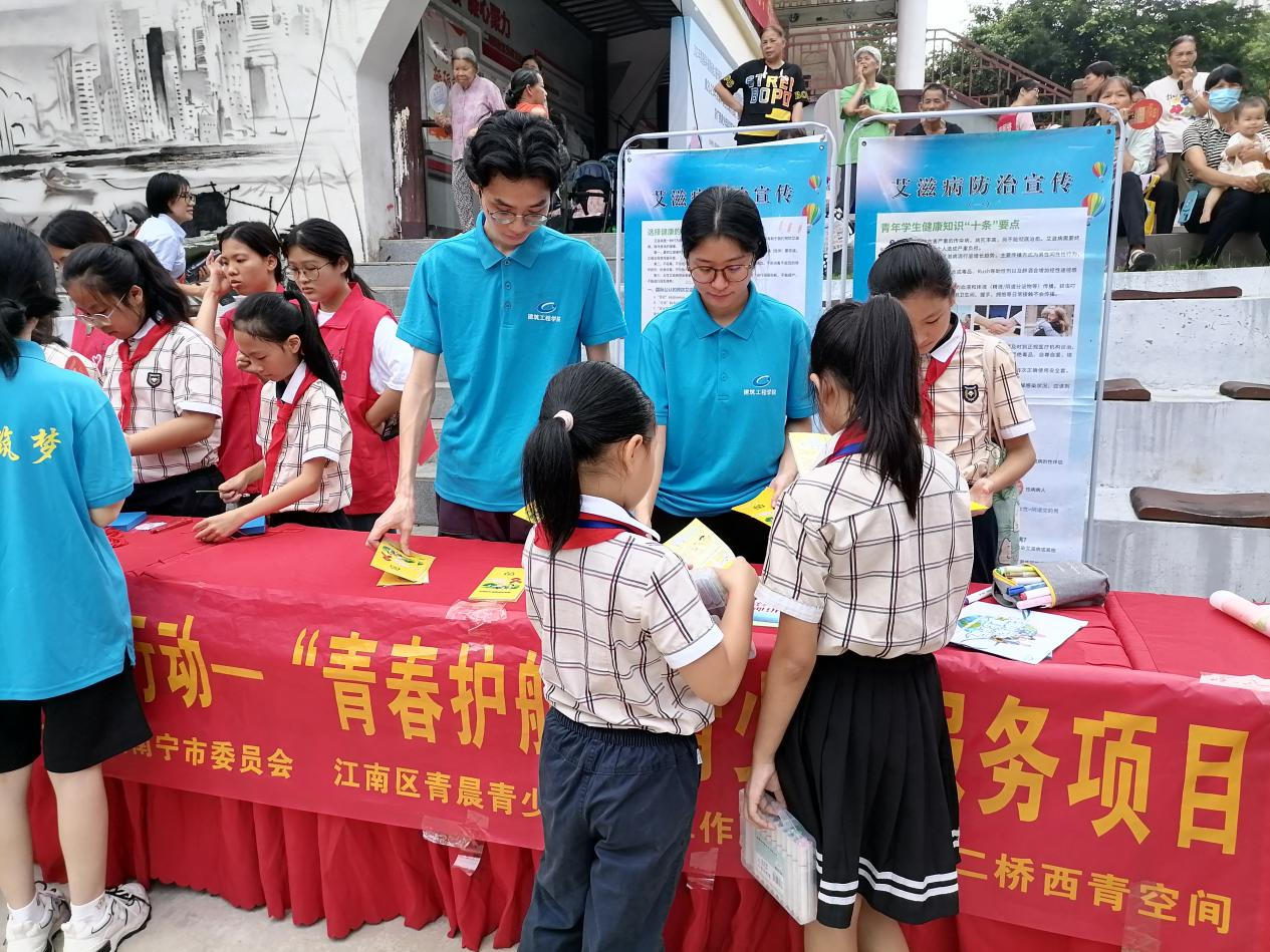 为进一步深入宣传艾滋病防治知识和政策,提高社区居民对艾滋病的认识,掌握更多的艾滋病防治知识,营造健康和谐的生活环境,2023年9月26日,21室内2班团支部前往南宁市江南区二桥西社区青空间开展"青春护航,与你同行”青少年预防艾滋病知识宣传活动。