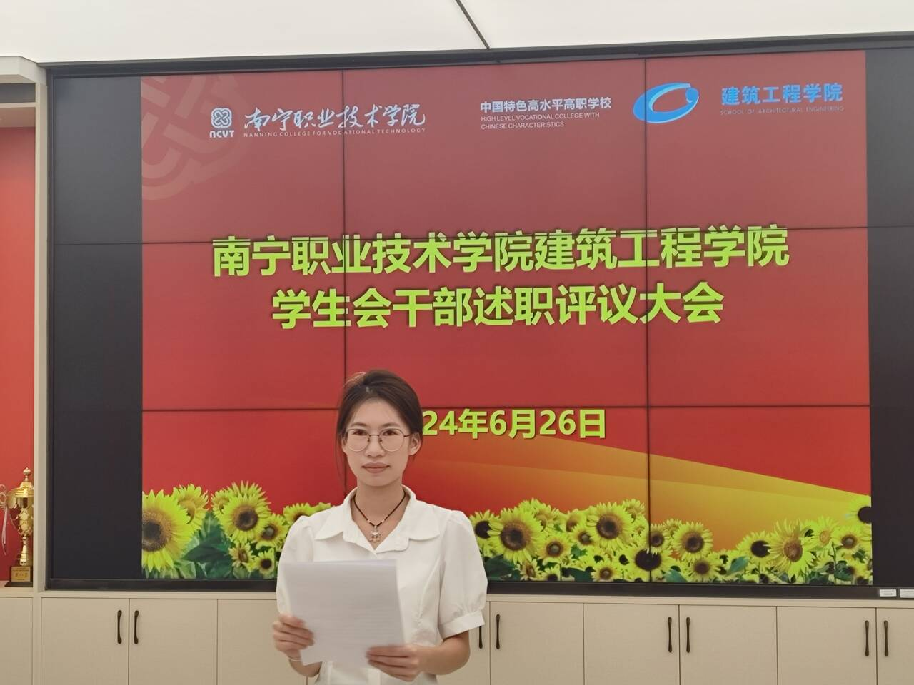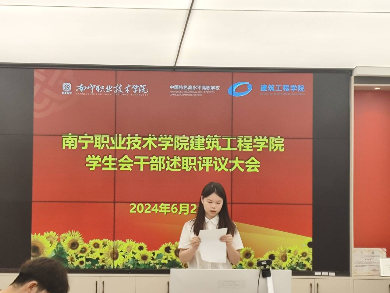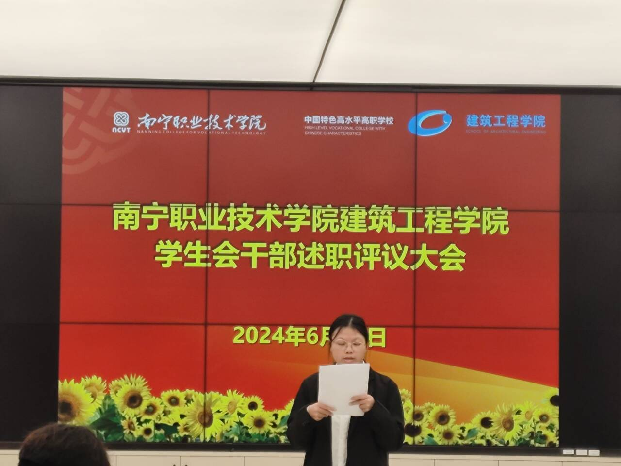 评议大会开始,毛月算、黄菊香、陈淇等9名员工会干部依次进行述职,他们按照要求开展春季学期工作述职,任静老师在述职结束后针对9名同学分别进行了点评,班级代表也认真参与评分提出建议。
