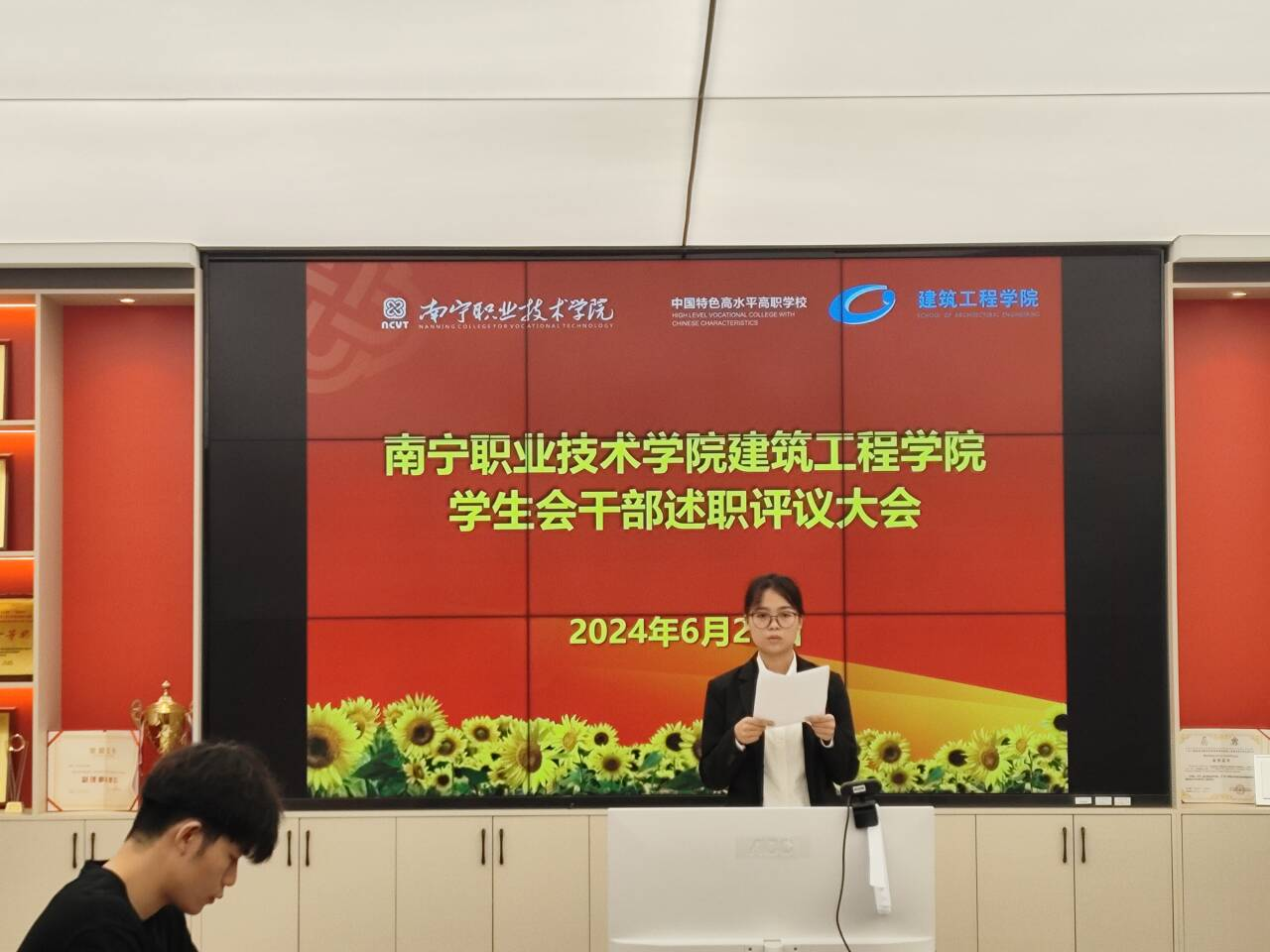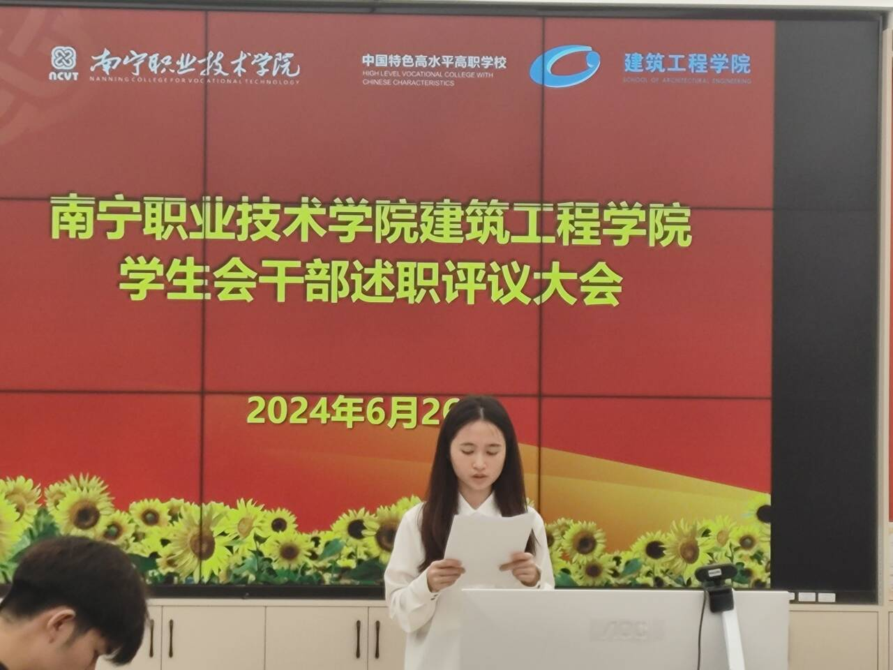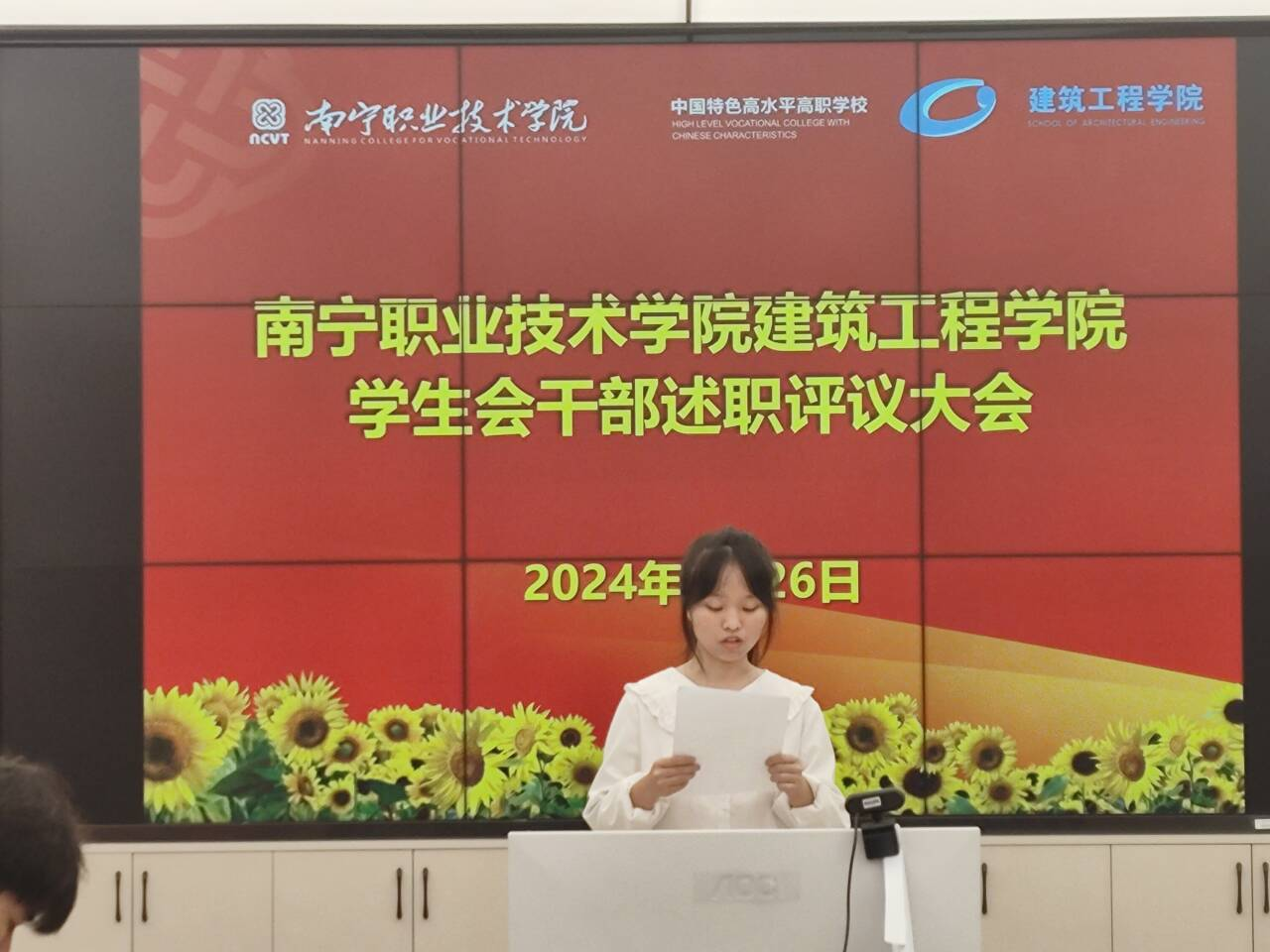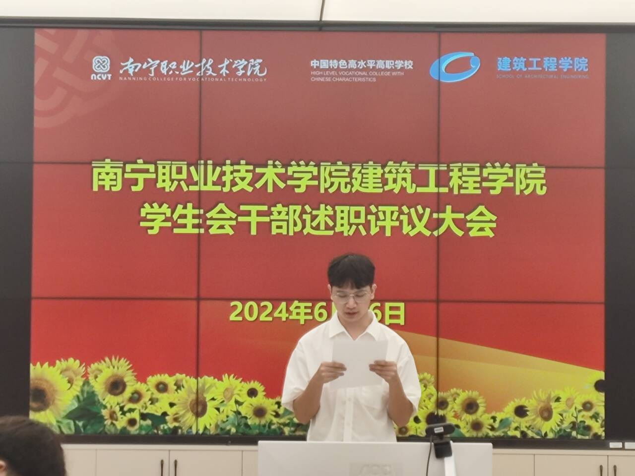 评议大会开始,毛月算、黄菊香、陈淇等9名员工会干部依次进行述职,他们按照要求开展春季学期工作述职,任静老师在述职结束后针对9名同学分别进行了点评,班级代表也认真参与评分提出建议。