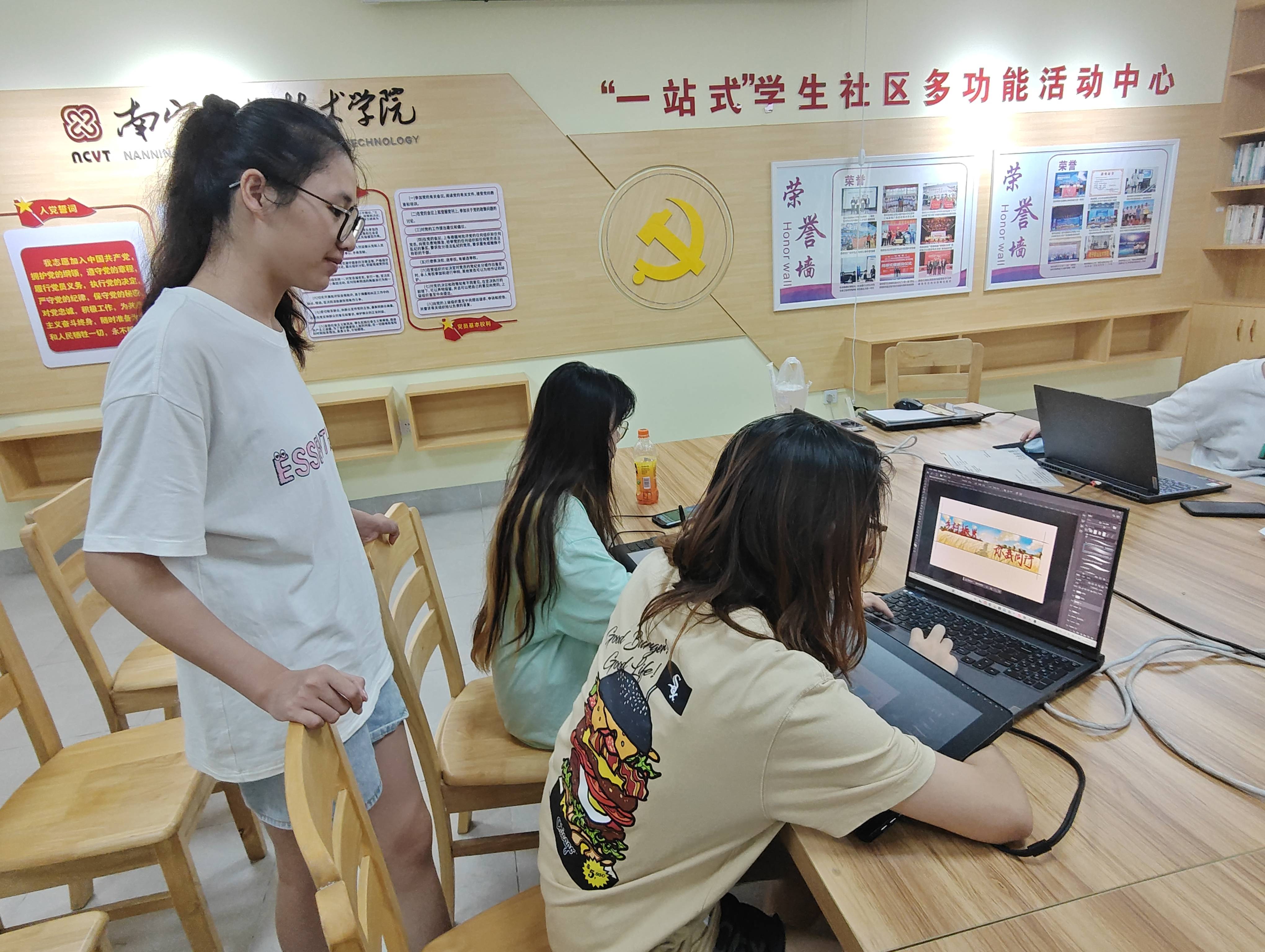同学们在讨论之后开始动手设计,陆娇颖学姐给每一个小组进行点评,对于操作上不懂之处也耐心为同学们解答。