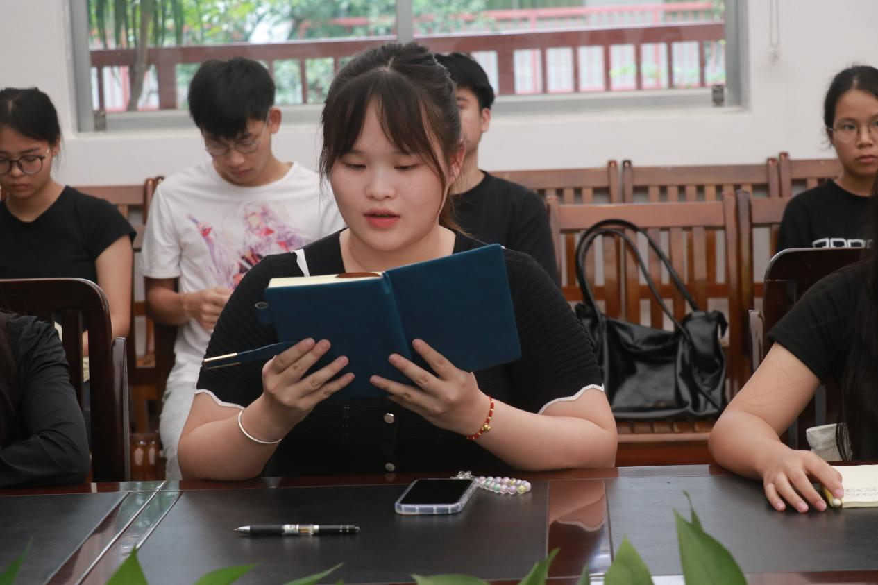 会中,黄燕倡导同学们要热爱读书,善于从书中吸取知识、增强才干,并提出四点建议:一是要养成良好的阅读习惯;二是善于从阅读中吸取力量;三是要学以致用、学用相结;四是凝聚合力,团学干部要发挥好示范带头作用。随后,赵璇、周施、黄靖、韦佳佳、申雯靖、廖诗仪等六位同学作为代表,分别就《习近平与老员工朋友们》第一、二卷中的内容分享自己的读书感悟。