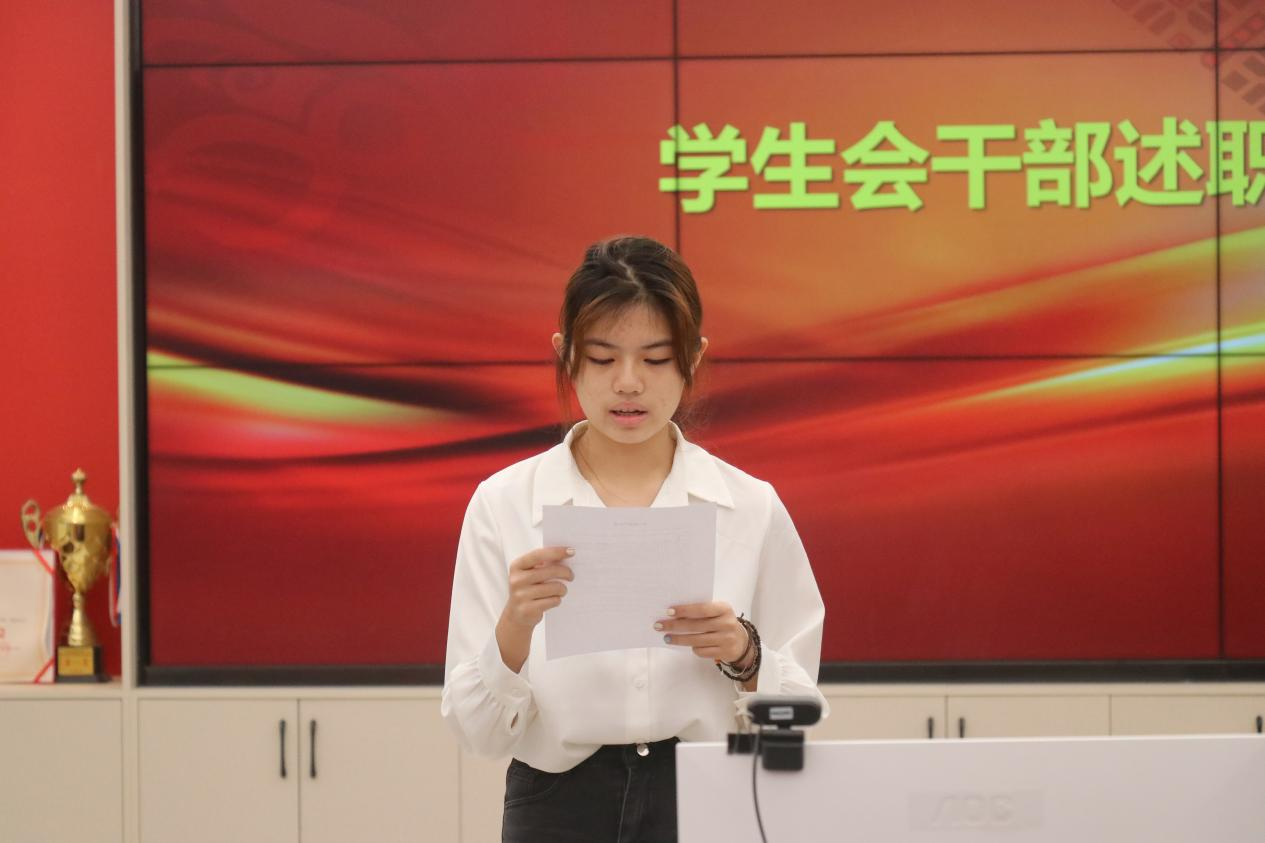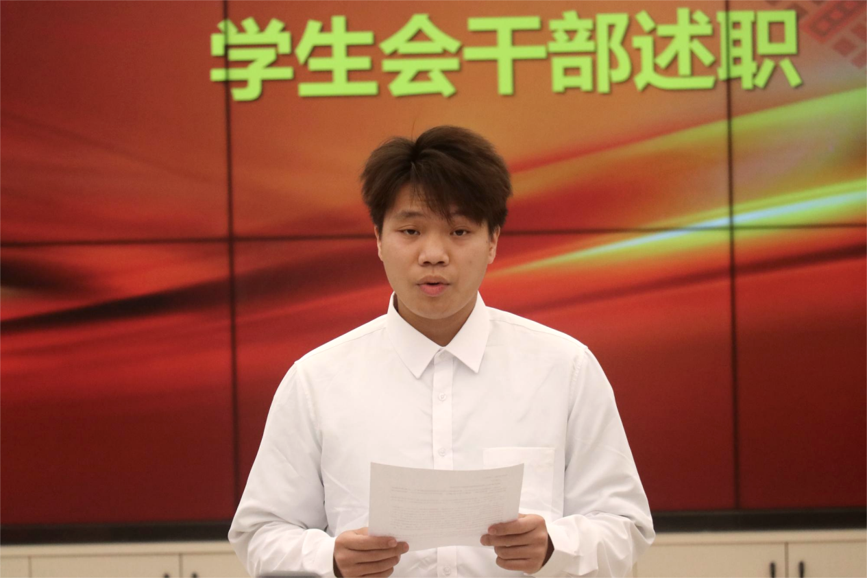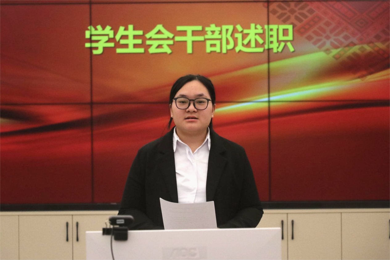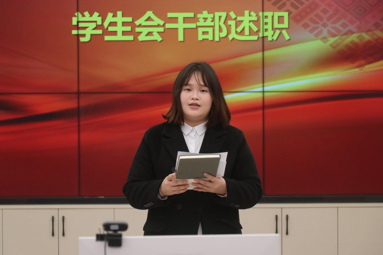 评议大会开始,廖诗仪、熊正鹏、黄靖等9名员工会干部依次进行述职,他们按照要求秋季学期员工会工作进行述职,黄燕老师在述职结束后针对9名同学分别进行了点评,班级代表认真参与评分并提出建议。