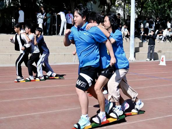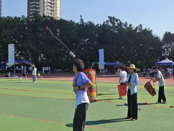 田径项目,选手们如离弦之箭,在电光石火间诠释着速度与激情;跳高与三级跳远场地上,一次次助跑、腾空与落地,划出青春的弧线;铅球赛场,沉甸甸的球体在空中推出力量的轨迹;高杆抛劲旅,背篓接默契,彩球划劲旅轨迹;板鞋赛程,板鞋上的脚掌同频起落,臂膀交叠成紧绷的纽带,整支队伍如同一股拧成绳的力,在跑道上砸出整齐又炽热的节奏;接力项目更是将团队精神推向高潮,4×100米赛道上,每一棒传递皆是信任与默契,凝聚着集体的力量与呐喊,也为本届校运会留下了最动人的协作篇章。运动员以坚韧意志挑战极限,每一步都写满坚持。