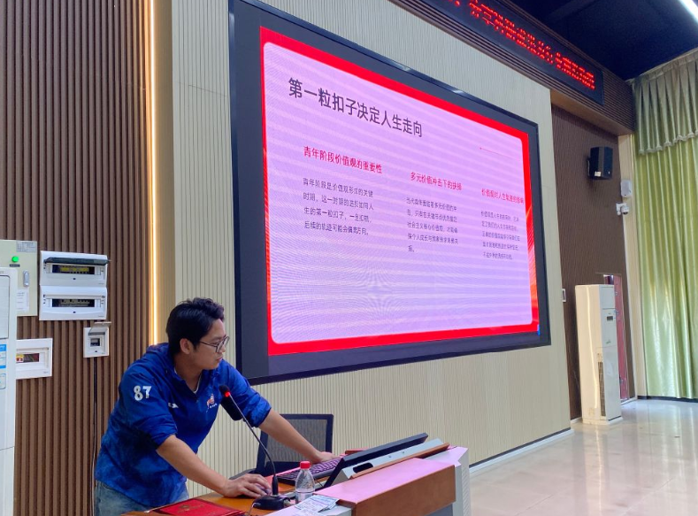 11月26日下午,公司在三教四阶教室开展主题为“扣好人生第一粒扣子:让青春与价值观同行”的主题团课,公司专职辅导员陈天龙老师担任本次团课授课人,全体入团积极分子参加本次团课培训。