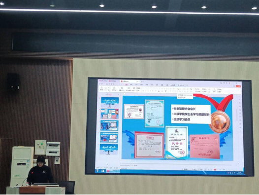 24现代物业管理1班的方诗婷同学,以自身丰富的竞赛实践经历为切入点,围绕“竞赛是成长的‘练兵场’”核心理念,从实践应用、思维锤炼、综合能力提升等多个维度分享宝贵经验。她引导同学们既要重视专业素养的积淀,也要注重实操技能的打磨,建议在参赛前制定科学详尽的备赛计划,赛后及时复盘总结、查漏补缺,让每一次竞赛经历都成为自我精进的有效载体。