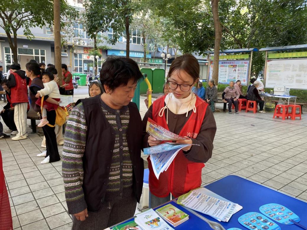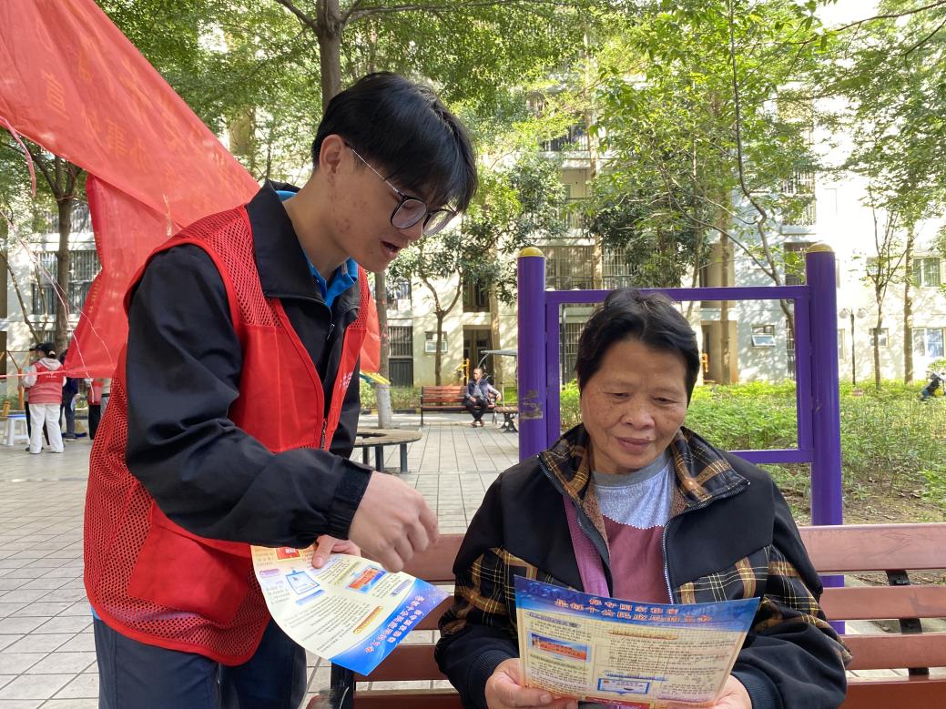 图4-7志愿者在向居民宣讲普及安全知识(苏崇文/摄)