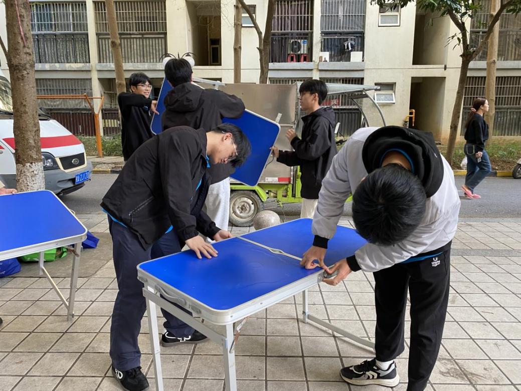 图2-3 志愿者在进行活动前的准备工作(苏崇文/摄)