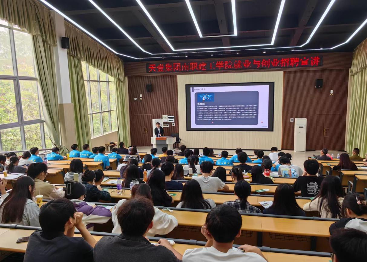 陈纲对天壹集团来校宣讲表示欢迎,并对前来参与宣讲的员工予以激励。天壹集团总经理黄硕英对公司的构架进行介绍,着重对扶持三农、乡村振兴、跨境电商、地产营销、引导退役军人就业与创业等内容进行宣讲,宣讲结束后,天壹集团为公司员工提供包含房产经纪人、乡村振兴项目导师、乡村振兴园林规划、产业规划设计师等150多个高质量的工作岗位。
