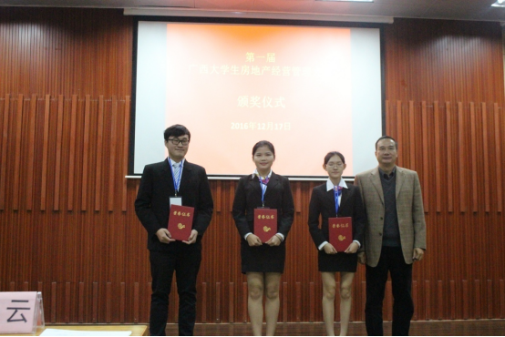 结合岗位需求,以赛促教。2015年参加第三届全国高职房地产经营管理业务技能大赛二等奖,同时,房地产经营与估价专业荣获中国房地产行业影响力排行榜50强;2016年参加第四届全国老员工房地产经营管理大赛一等奖;创办第一届广西老员工房地产经营管理大赛并获得团体特等奖。