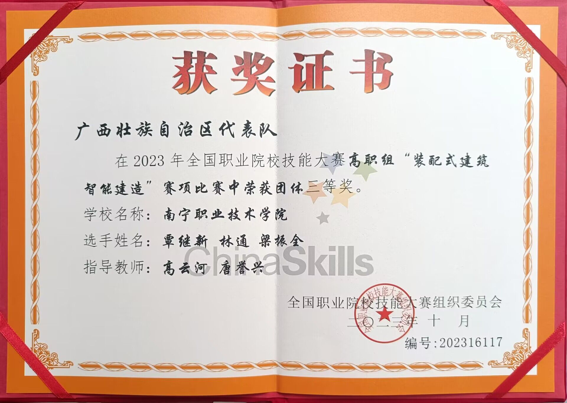 2023年在上海举办全国职业院校技能大赛装配式建筑智能建造赛项获三等奖