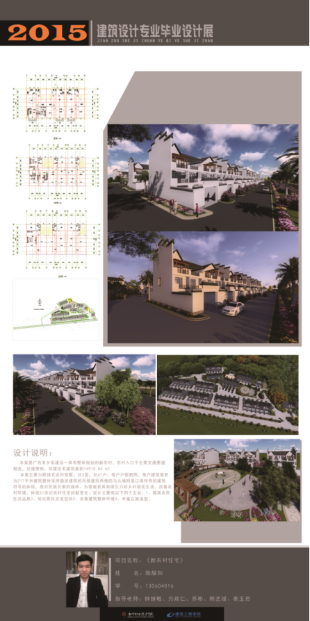 主持设计了广西扶绥秀湖商贸城、扶绥扶麻片区危旧房改造一期工程、龙州镇城南幼儿园、响水镇鸣凤中心小学、龙州县水口镇公司、逐卜乡逐卜中心幼儿园、龙州高中、上降乡板色新村、扶绥县生态移民新村等项目,均获业主好评。