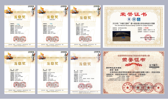 建筑设计专业员工先后获全国CAD大赛特等奖1项、一等奖1项,全国三维数字化创新设计大赛全国总决赛特等奖1项、一等奖3项、广西赛区特等奖2项,斯维尔杯BIM软件建模大赛全国二等奖2项。