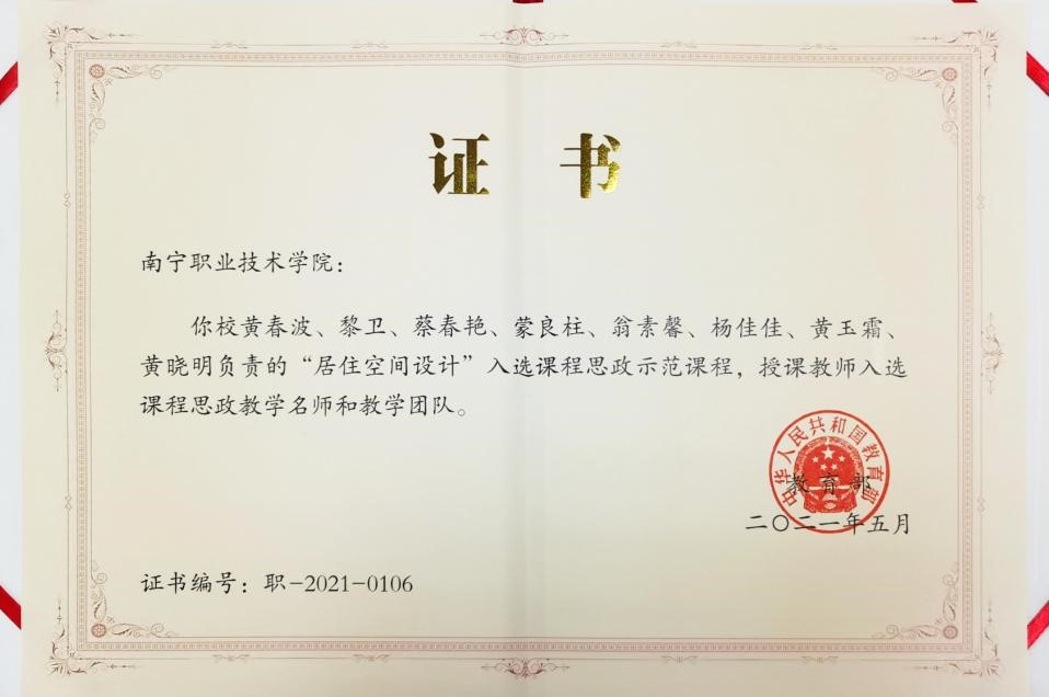 课程体系创新——建筑室内设计专业坚持“工教主导工学模式”的课程改革与开发,以市场需求为出发点、以职业能力培养为核心,构建了国家、省、校三级精品课程体系。其中《居室空间设计》课程荣获国家级精品资源共享课程;《民族建筑装饰设计与应用》、《室内装饰构造》两门为广西壮族自治区区级精品课程;完成了与精品课程配套的课程标准、立体化教材、网络课程、实施方案、评价体系、配套课件、学习指导、课程录像等教学资源的建设。为员工的学习提供了丰富的资源。